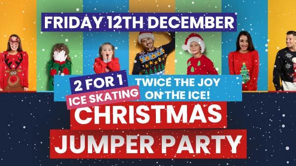 Celebrate Christmas Jumper Day with 2 for 1 ice skating. Bring a friend, wear your favourite jumper and join the festive fun on the ice.